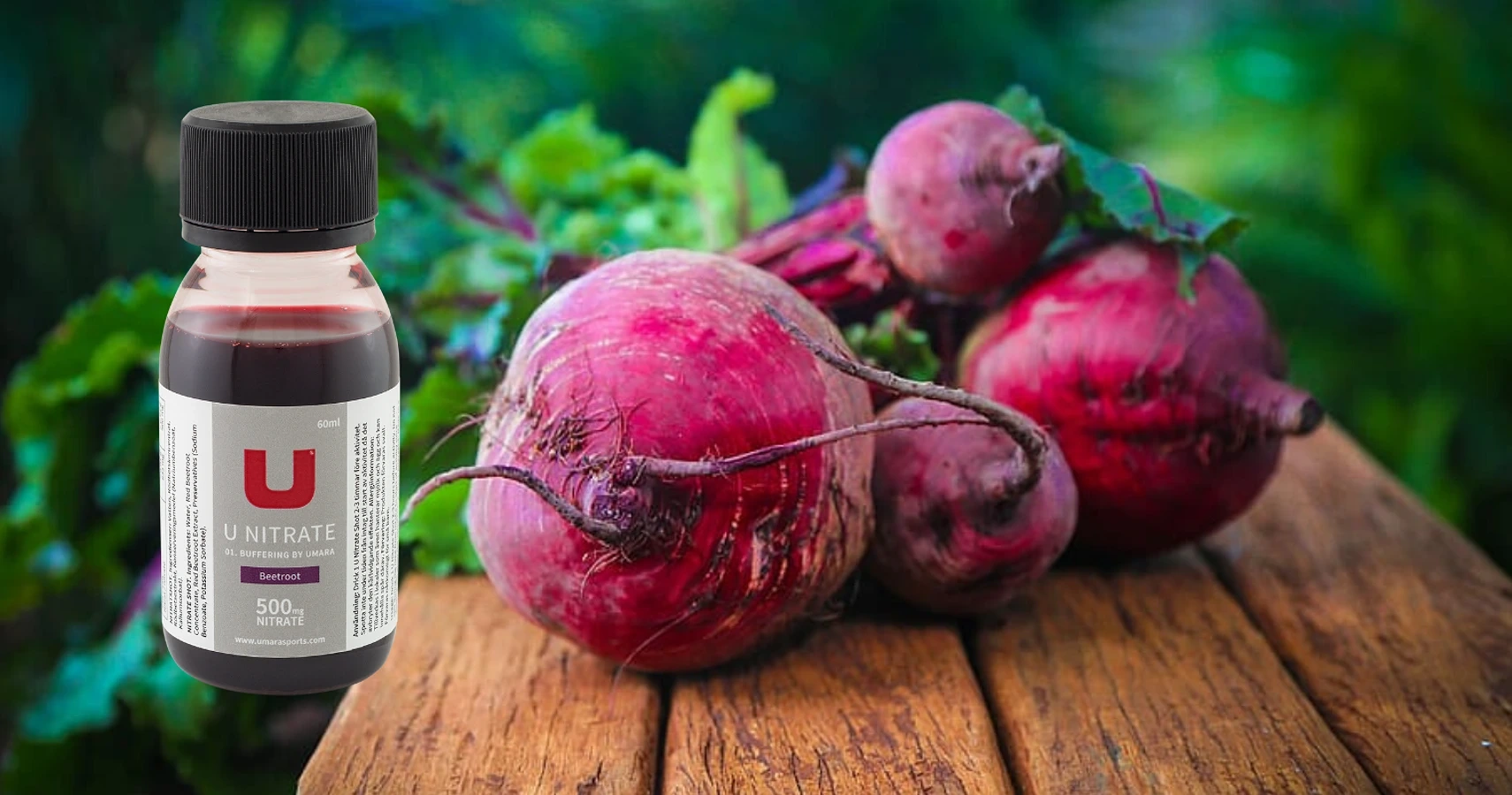 En halvliter rödbetsjuice innehåller runt 5-8mmol nitrat där skillnaden mellan 5-8 troligtvis beror på skillnader i odlingsmark, väder, transport, skördetid m.m. Vår egna U Nitrate - Rödbetsshot innehåller 500mg nitrat (8 mmol). Vi har valt att öka upp mängden nitrat i U Nitrate från de 400mg som många andra har, upp till 500mg (+25%). Anledningen är ganska enkel, detta innebär att för majoriteten av idrottare räcker det med en shot för att få den kärlvidgande effekt man sett i studier på idrottare. Har du ett VO2max på 60ml/kg/min eller lägre så verkar 500mg (8mmol) räcka utmärkt. Har du högre syreupptag behöver du 2st shot, alternativt buffra (se användningsinstruktioner).