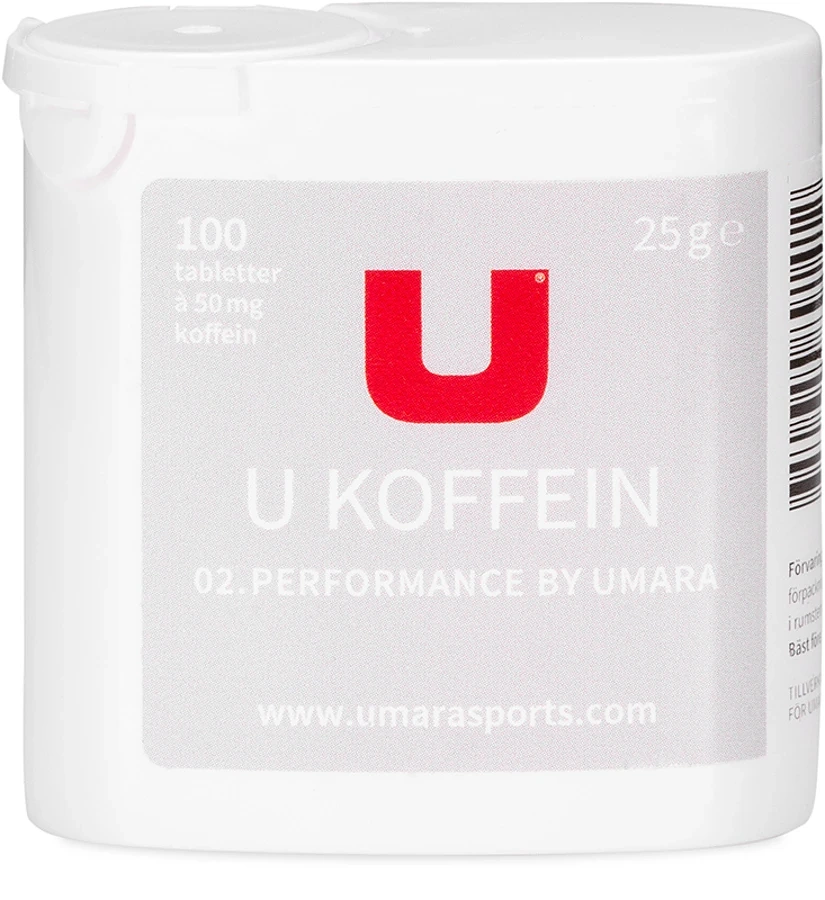 U Koffein kommer i små tabletter med 50mg koffein i varje tablett. Med hjälp av U Koffein kan du på ett enkelt sätt tillföra 50mg koffein varje timme, eller bara när du behöver en extra energikick under träning/tävling. 1-2 tabletter per timme under fysisk aktivitet. Eller 3-6 tabletter 30min inför start för att få en energi-boost.