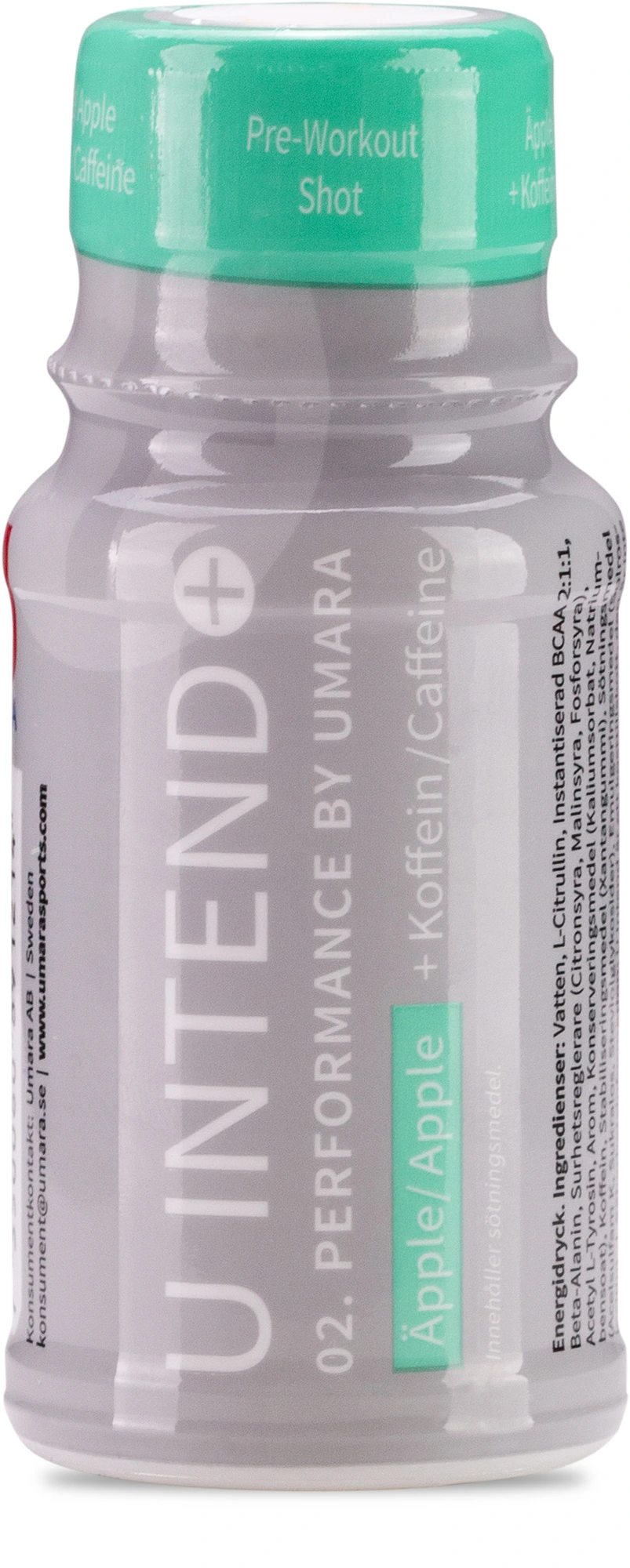 Vår superpopulära U Intend med smak av Äpple finns nu äntligen i en drickfärdig version. I en liten 60ml-flaska (som en Beet It-flaska) har vi fått in en halv dos av U Intend.