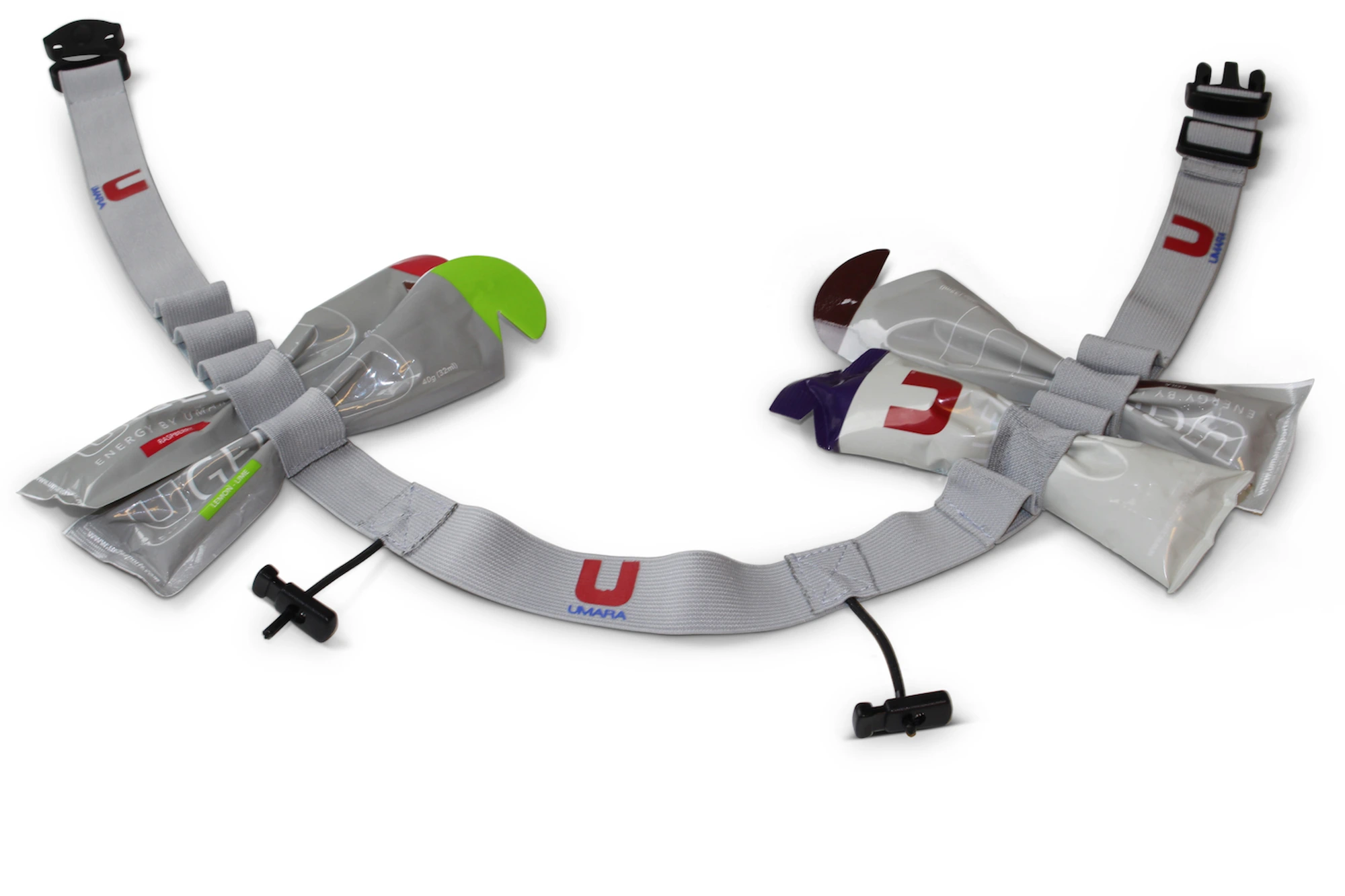 För 100kr så är bältet ditt och i detta kan du enkelt stoppa dina energigel. Våra U Gel passar i öglorna som du ser på bilden nedan, och du behöver således inte bära med dig mer vikt än nödvändigt.