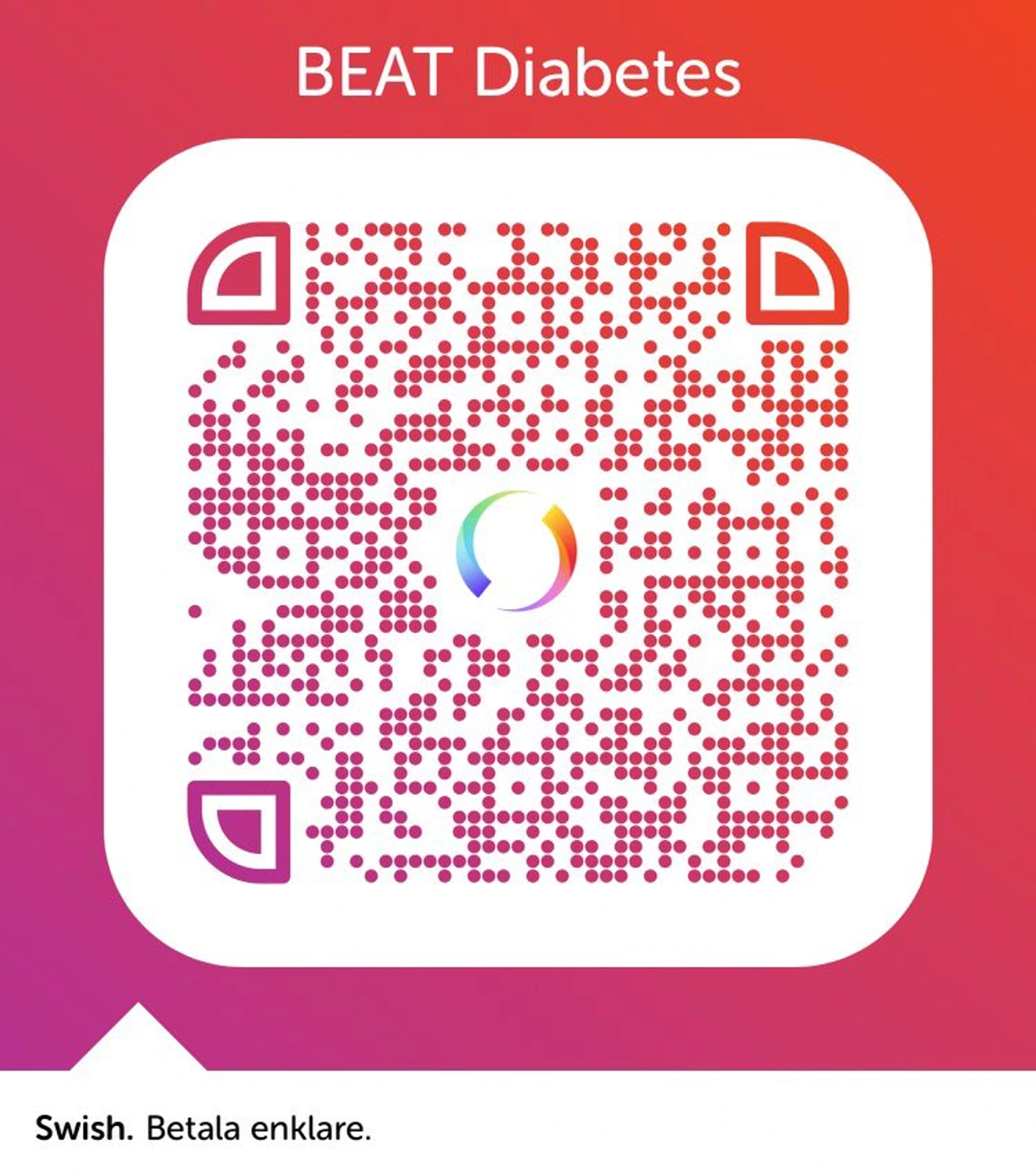 Donera direkt till Beat Diabetes med swishkoden: 123 318 60 20 eller scanna koden ovan.