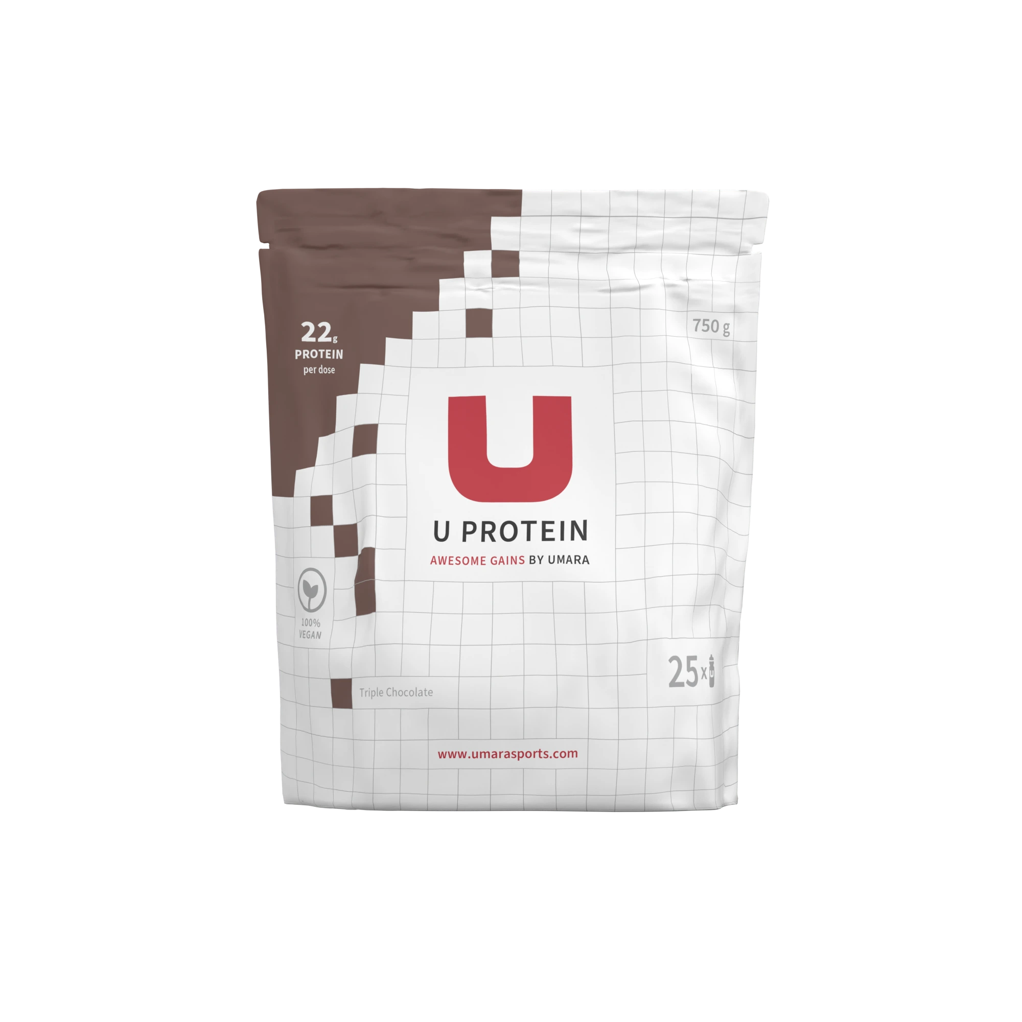 För U Protein med en mix av soja och ärta så ligger beräknat utsläpp (ink transport av råvaror och bearbetning) på 3,35kg CO2 per kg proteinpulver vilket ska jämföras med CO2 utsläppet för 1kg vassleprotein som ligger på 12kg CO2 per kg proteinpulver. Detta innebär en besparing på ca 70% koldioxid per kilo proteinpulver vilket är en av anledningarna till att vårt proteinpulver blev vegetabiliskt, men givetvis utan att kompromissa på kvalitet och aminosyraprofil.