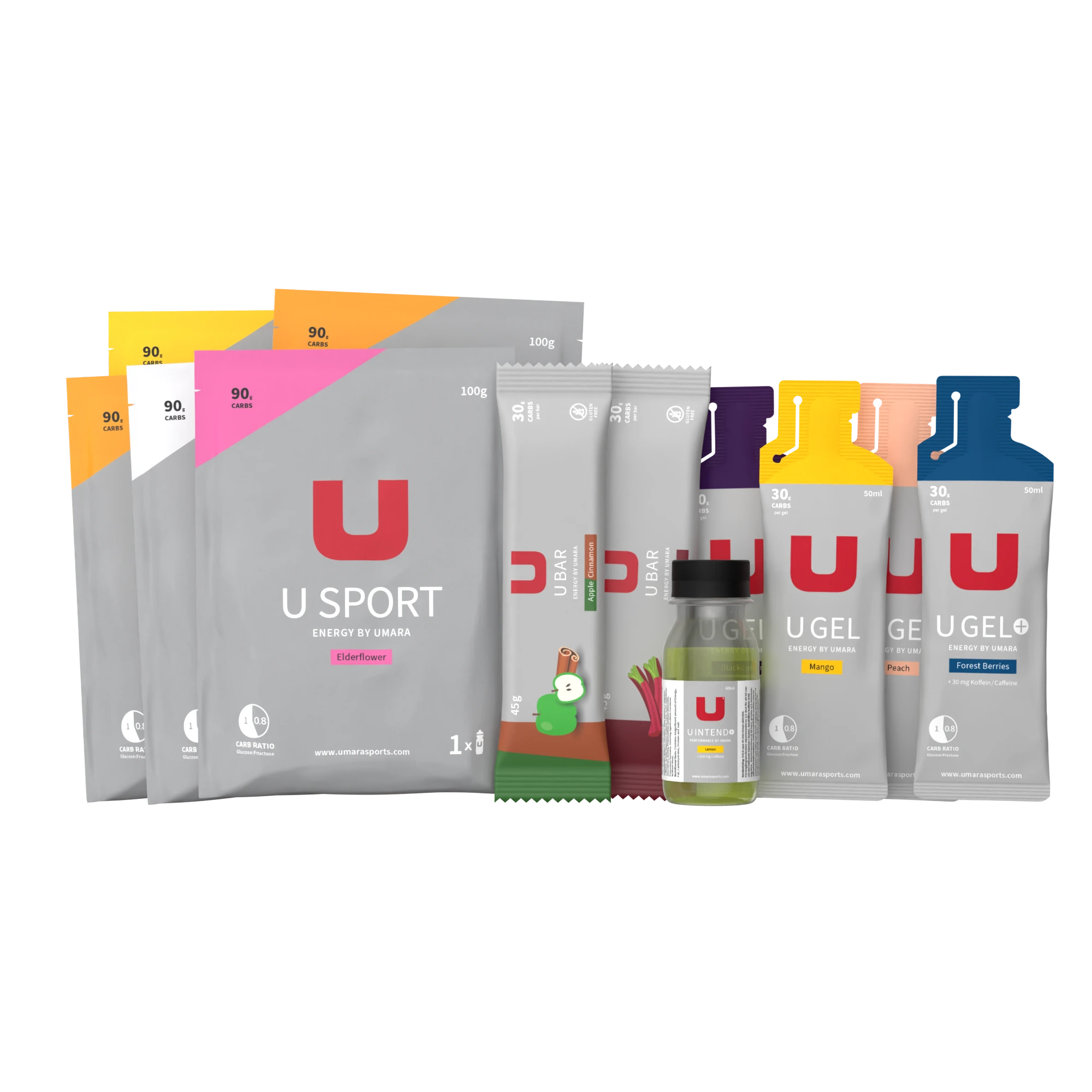 Paketet levererar 90 g kolhydrater i timmen i upp till 7 h och innehåller därmed allt du behöver, utöver vatten från stationerna, om du åker på denna tid. Om du räknar med att ta längre tid på dig än så rekommenderar vi att du även kompletterar med sportdryck eller annan energi från stationerna (utöver vatten).