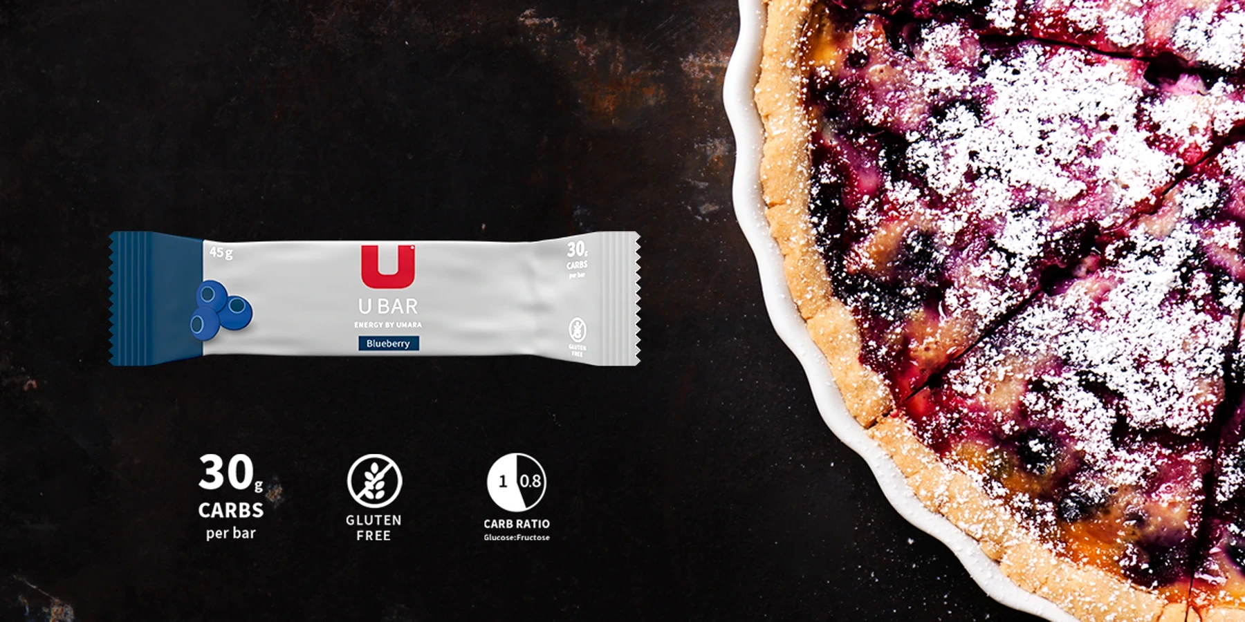 U Bar 1:0,8 - Glutenfri med smak av blåbär är här. Detta är en energibar baserad på glutenfria havregryn som ger hela 30g kolhydrater. Baren är vad vi skulle säga, en optibar med sin 1:0,8 sammansättning mellan glukos och fruktos och därmed så snäll mot magen som möjligt för en bar. Den är naturligt smaksatt med blåbär som då också gav degen och därefter baren en lite blå/lila färg.