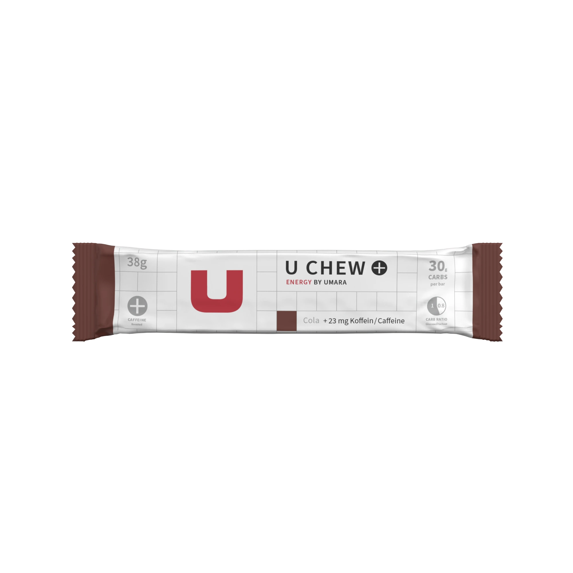 U Chew är vår "Tuggbar" eller kanske tuggbara/fasta gel. Optimerad likt våra gels med 1:0,8 kolhydratratio och salt. Upptaget av energi går lika fort som med gel så på det viset är produkterna likvärdiga men U Chew är mer fast i formen. Finns både med och utan koffein och varje U Chew ger 30g kolhydrater.