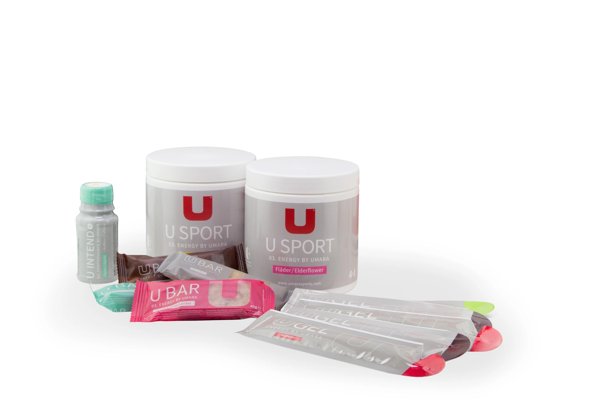 - 2-4 doser U Sport 1:0,8 utblandat i 750-800ml flaskor. Drick en flaska under 4 timmar.