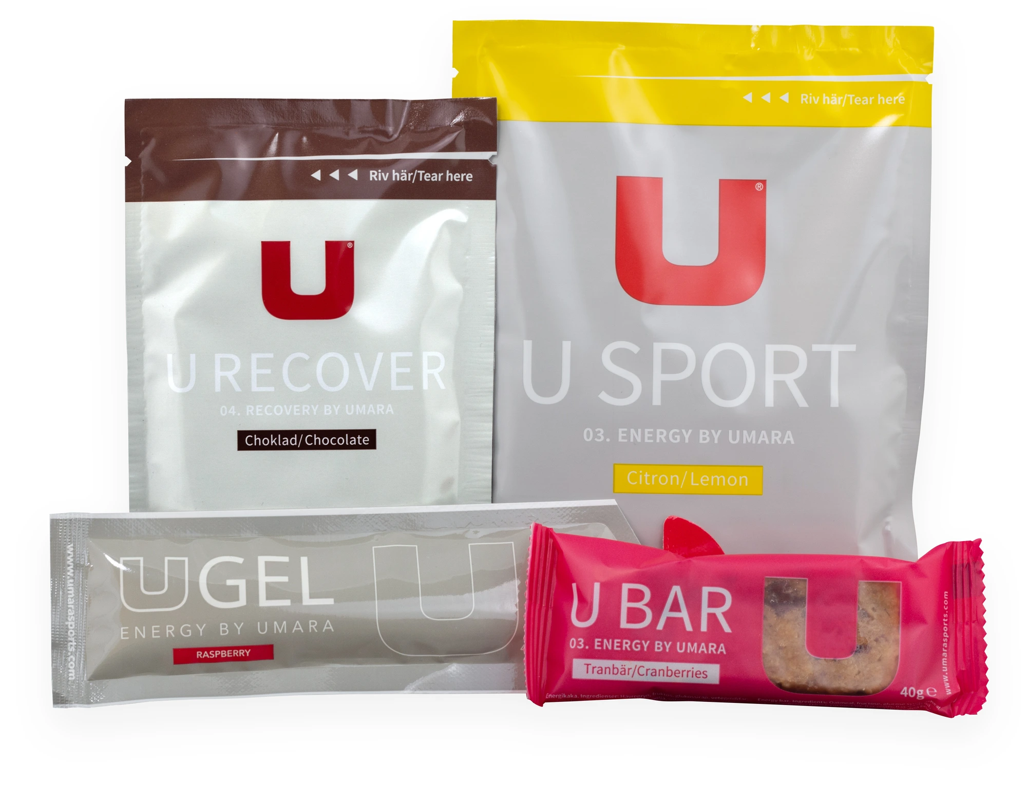 - 5st U Gel 2:1 i valfria smaker (Cola innehåller 30mg koffein)