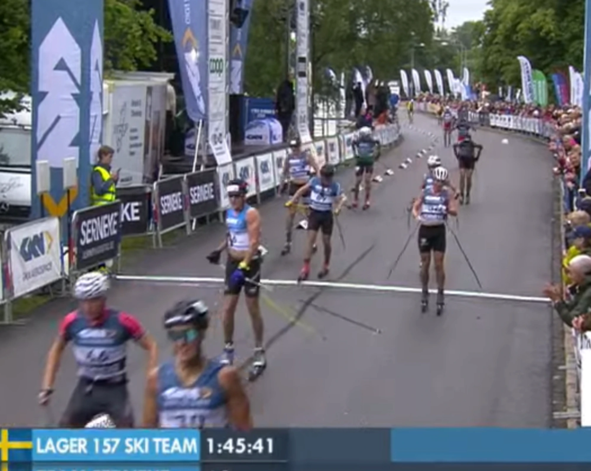 Jag laddade med en skopa U Intend och lite sportdryck innan start för att vara beredd på den smäll som jag visste väntade i första backen direkt efter start. Och visst gick det fort från början, men lyckades ta mig upp till en placering kring 30 på krönet och däromkring höll jag mig under det mesta av loppet. Drack ungefär var tionde minut i lämpliga utförsbackar och det var enormt skönt att slippa stressa med att placera sig för varje langning. Jag lade istället energin på att försöka hålla tekniken och leta bra ryggar på stabila åkare. Regnet låg tungt över Trollhättan denna dag vilket bidrog till att hålla ihop klungan då det gick ännu lite tyngre att ligga först, detta fick i sig till följd att årets lopp präglades av en del fall och stavbrott. Att jag själv slapp undan sådant strul, förutom ett par adrenalinhöjande avspärrningshinder på villovägar som man fick hoppa över i varvningen, bidrog till en lyckad dag.