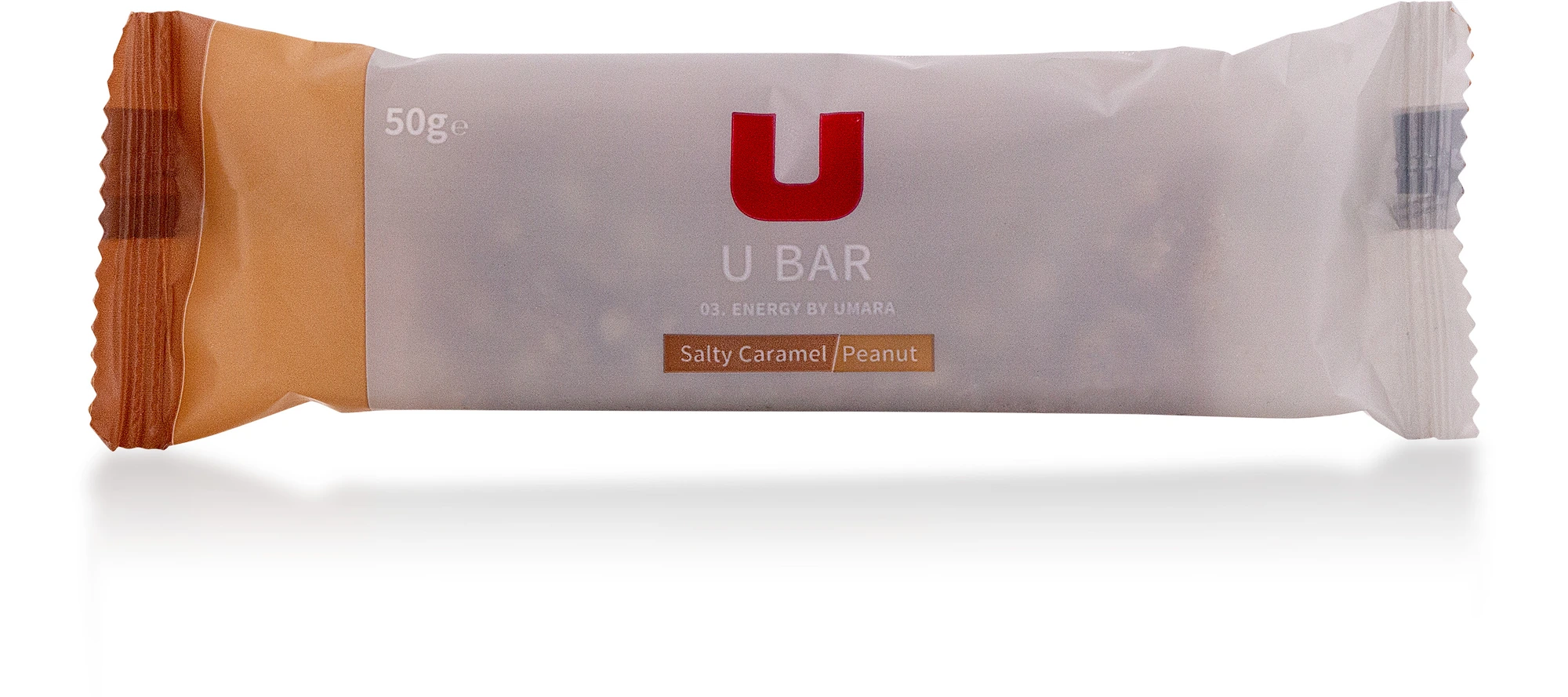 Saltmängden i baren motsvarar den salthalt du förlorar via 3,5dl svett. Det är alltså en rejäl saltmängd vilket ger en tydlig sälta som gifter sig perfekt med den sötare karamellsmaken och den nötiga jordnötssmaken. I denna U Bar bakade vi även in lite riskrisp för en krispigare textur.