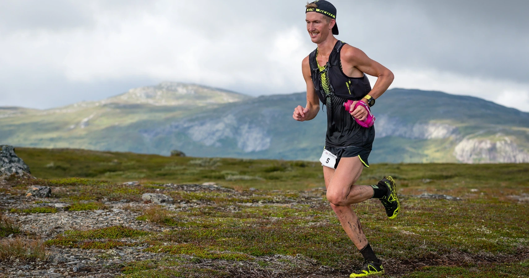 Om du springer med en väldigt lätt packning och enbart har med dig en liten flaska så rekommenderar vi att du fyller den med sportdryck 1,5 dos och fyller denna vid varje energistation. Med mindre sportdryck blir du mer beroende av gels. Försök att få i dig två stora U Gel 1:0,8 gels i timmen vilket ger 60g kolhydrater i timmen. När sportdrycken tar slut och du inte är i närheten av en energistation, fyll på med fjällvatten istället. Men öka då intaget av gels istället. Kom ihåg att totalt vill du få i dig ca 90g/h.