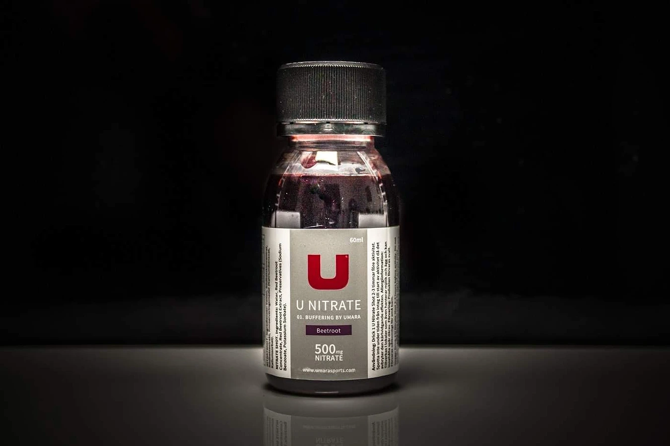 Ett av Umaras ledord är Prestation, och sökandet efter den är alltid prio. Under de senaste åren har det i vetenskapliga studier påvisats en solklar korrelation mellan Rödbetsjuice (där den aktiva substansen är Nitrat) och en ökad prestation. Därför är vi nu väldigt stolta att presentera vår egen U Nitrate - Rödbetsshot.