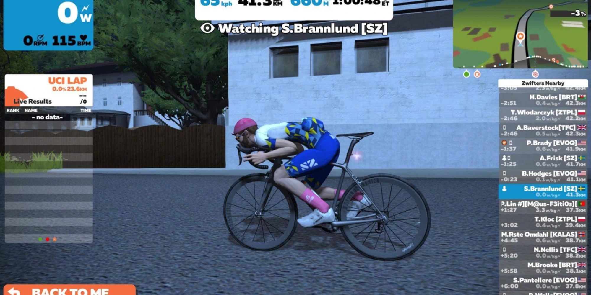 Är ni helt ny så skulle jag tipsa om att anmäla dig till lite mindre lopp, men med olika karaktärer och banor. Detta för att ni i mindre klungor får lära er hur dynamiken i spelet funkar och hur man på ett bra sätt ligger i klungan, det som alla i början upplever är att antingen är man först eller sist i klungan och att det blir väldigt ryckig körning. Enda sättet att lära sig undvika detta är att köra många tävlingar och verkligen fokusera på att lära sig köra snålt, testa att inte försöka vinna loppen utan istället vara den i klungan som kommer i mål på lägst W/KG.