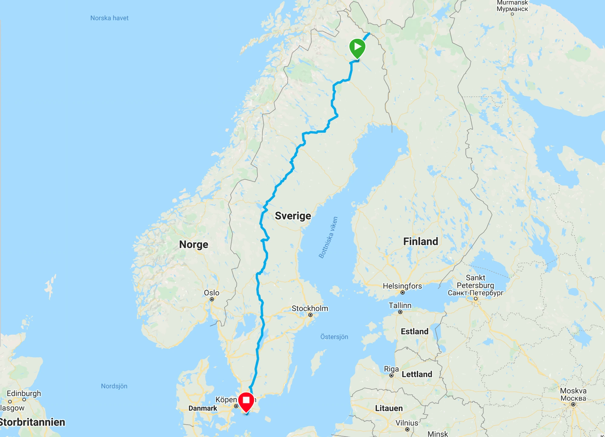 - Start - Vittangi (där Simon gick i mål)
